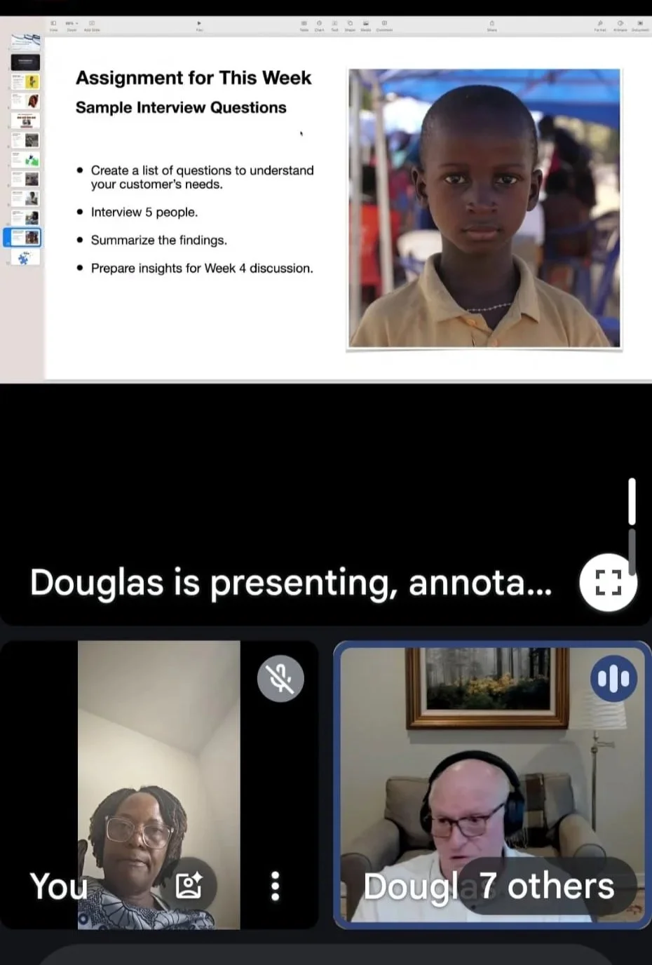 Doug leading a workshop for Unite teammates and scholars via Zoom.