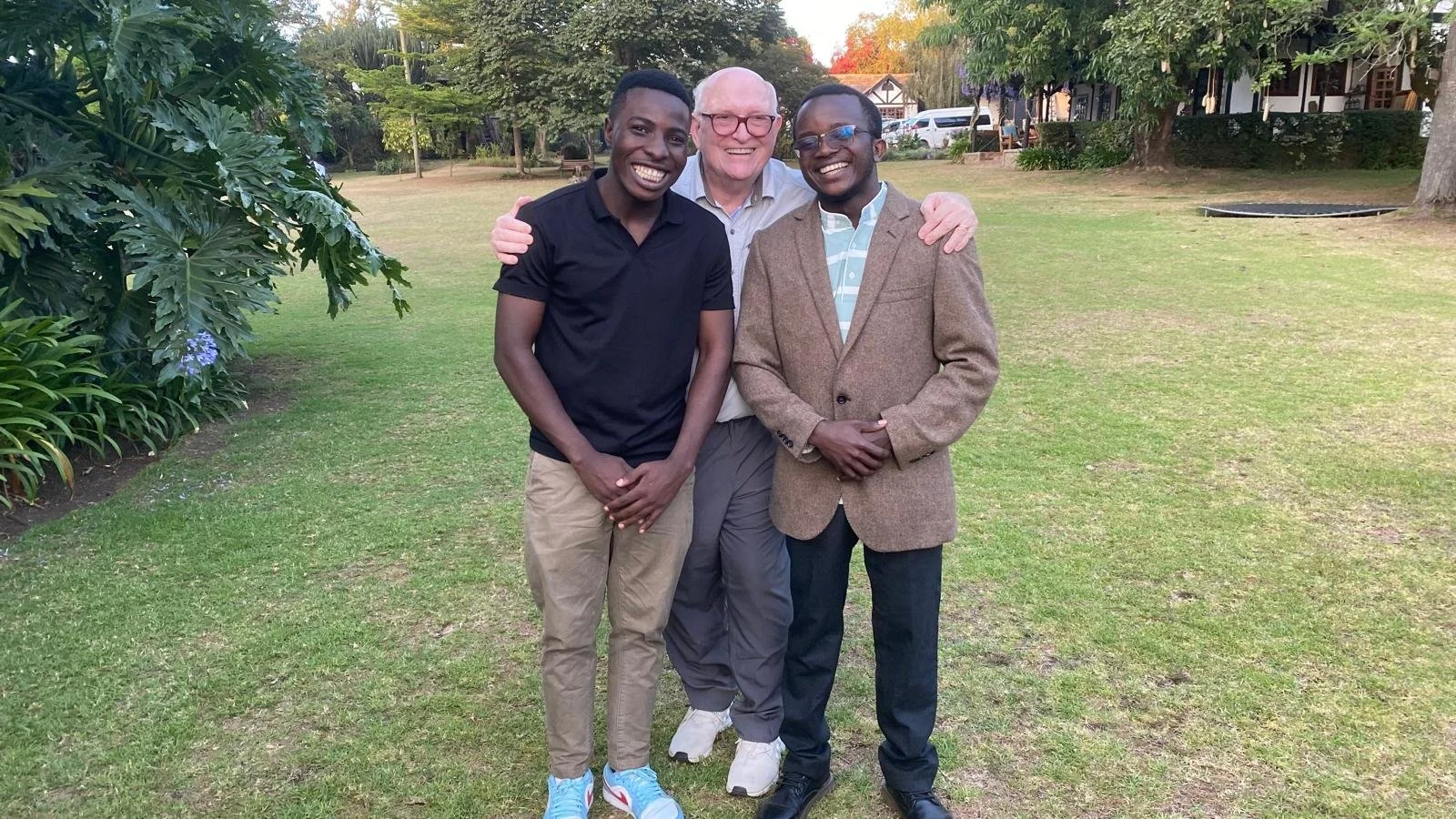 Doug with Unite medical scholars Nicholaus Makenza and Onesmo Shedrack, October 2025.